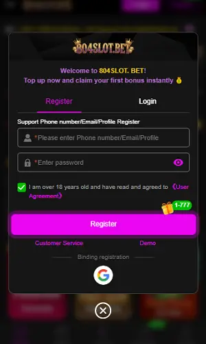 - Open the 804 Slot app and select the registration option.